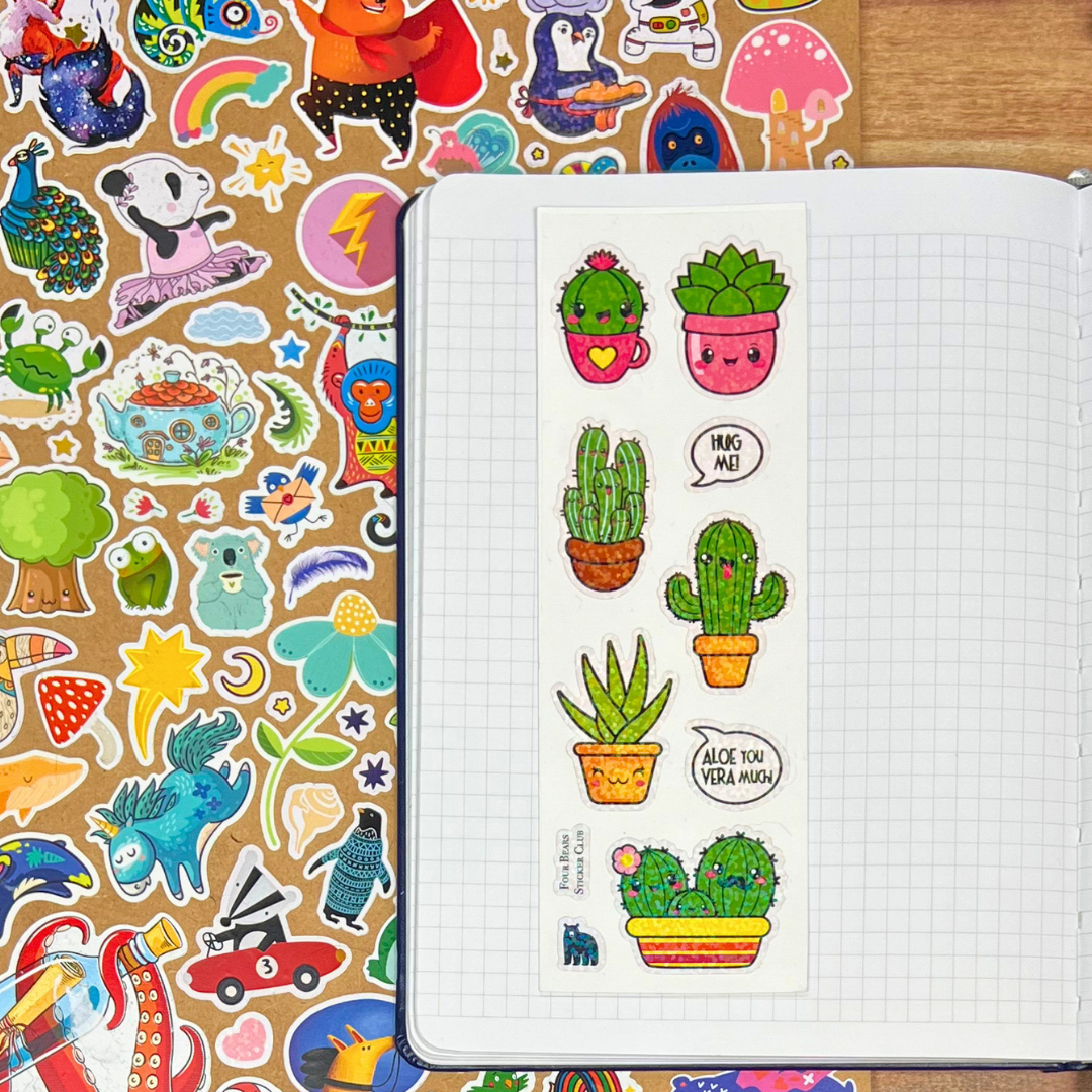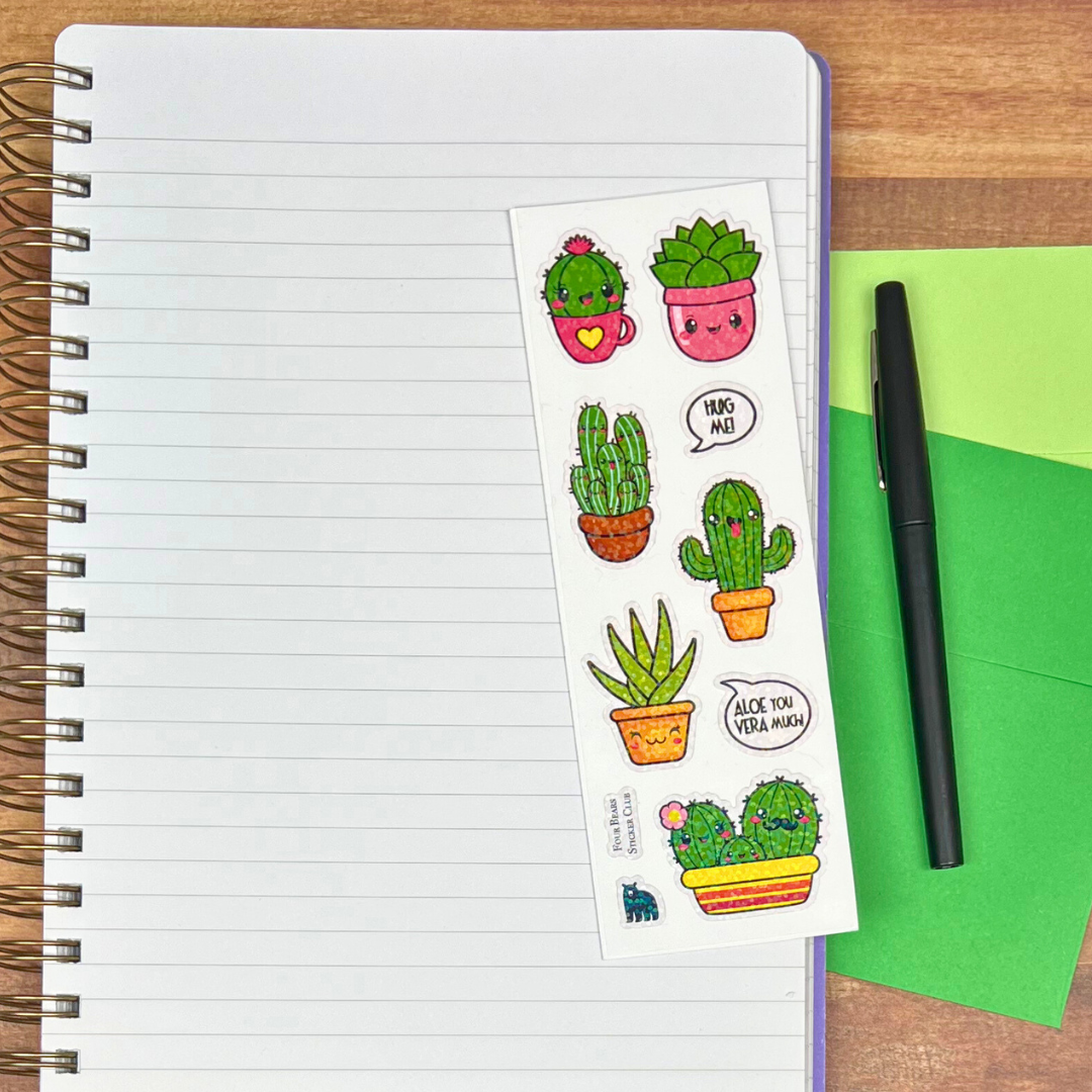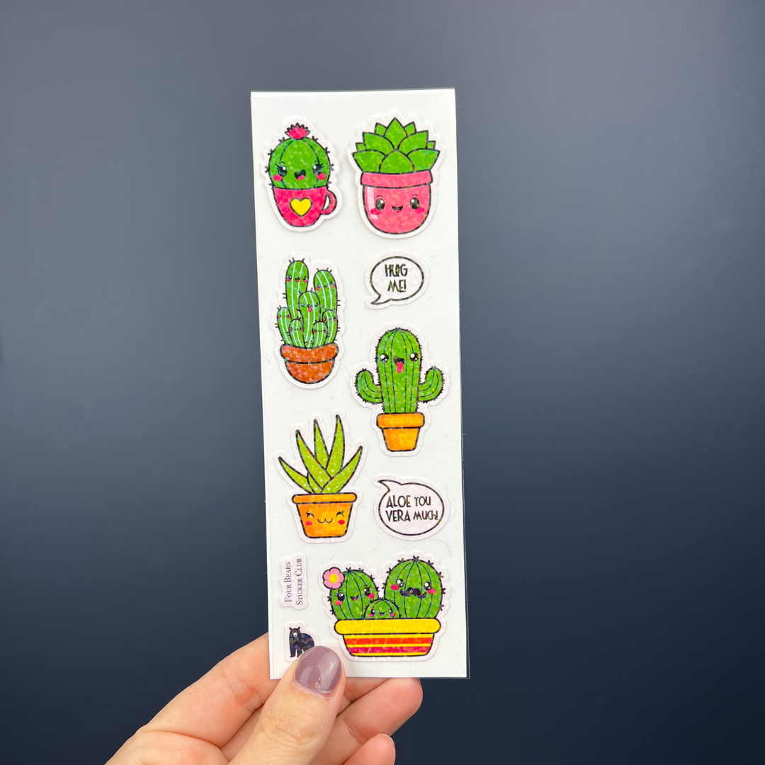 White PVC stickers on a clear backing with a sparkle finish