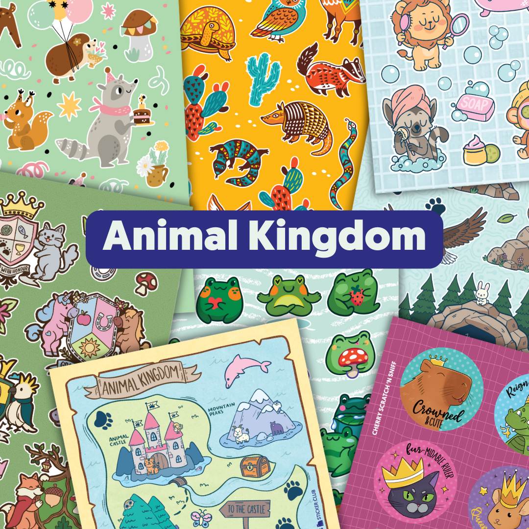 Welcome to the wild and wonderful Animal Kingdom! This playful sticker pack is full of friendly creatures, royal critters, and animal adventures from deserts to mountains and there's plenty of silly, cozy, and imaginative moments along the way.