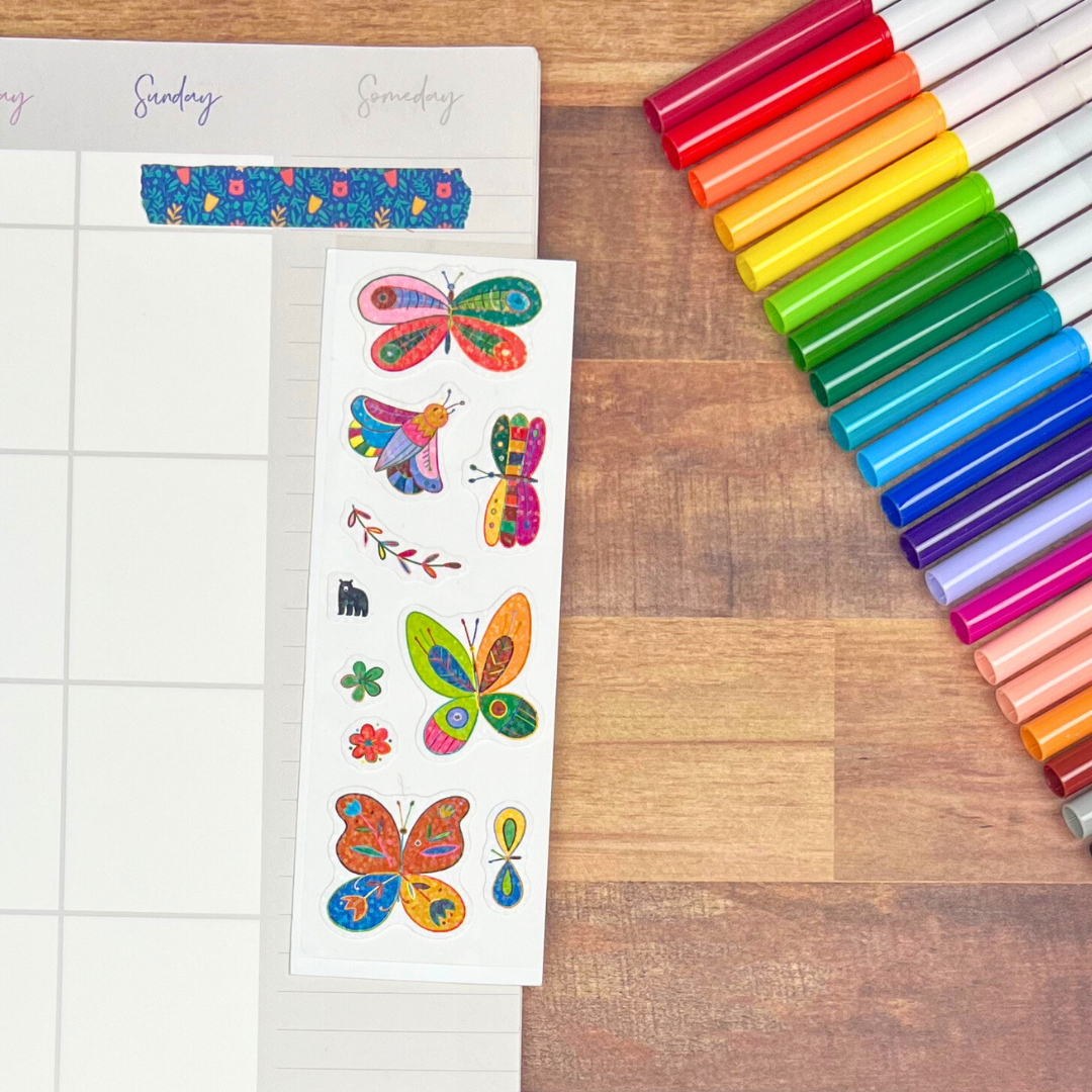 White PVC stickers on a clear backing with a sparkle finish