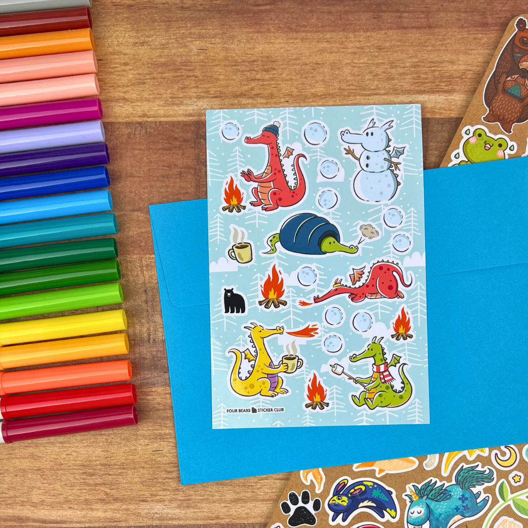 Perfect for little artists who love imaginative creatures, snowy adventures, and adding a burst of colour to notebooks, crafts, and lunch notes.