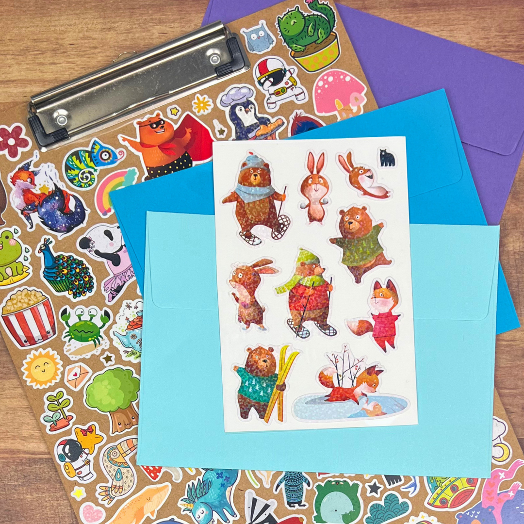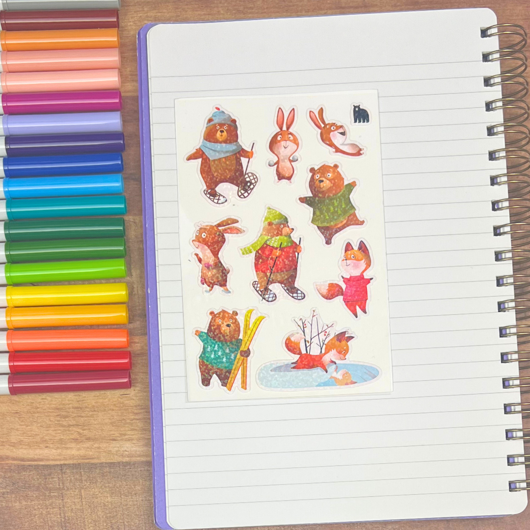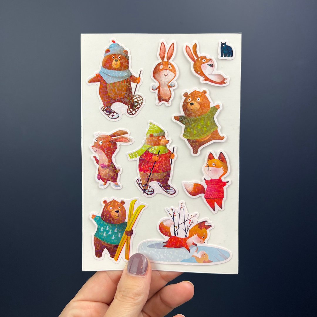 White PVC stickers on a clear backing with a sparkle finish