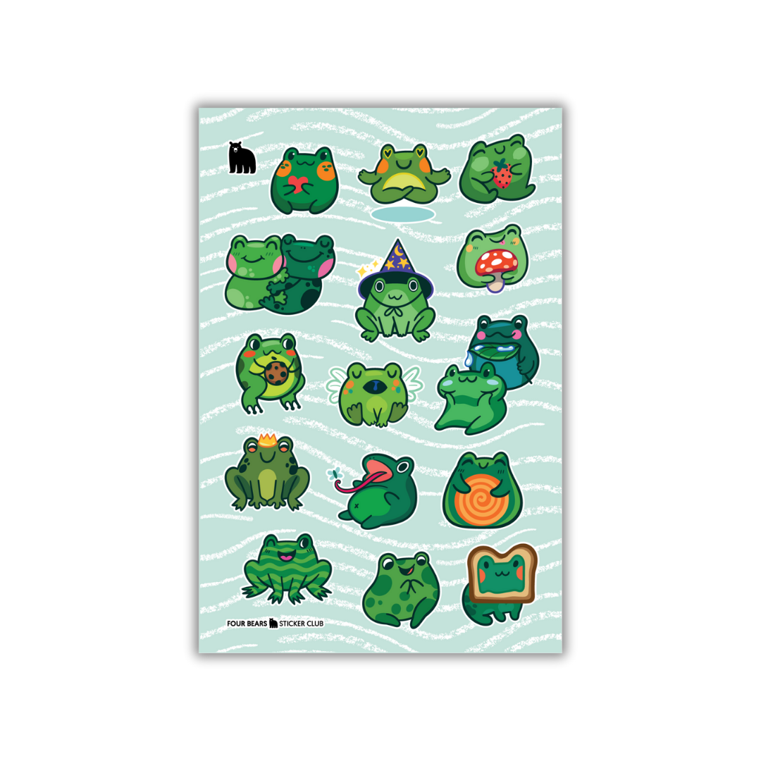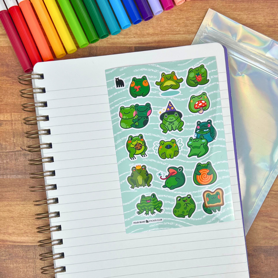 Hop into some fun with Hoppy Little Friends! This adorable sticker sheet features cheerful frogs enjoying all their favourite things - from stretching in yoga poses, munching on cookies, striking cute poses, and even wearing a royal crown. Each froggy friend is full of personality and ready to leap onto your page.