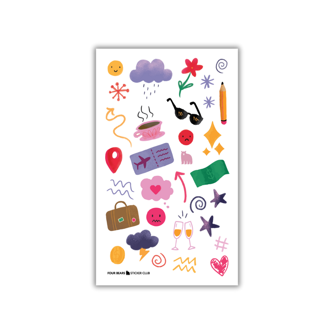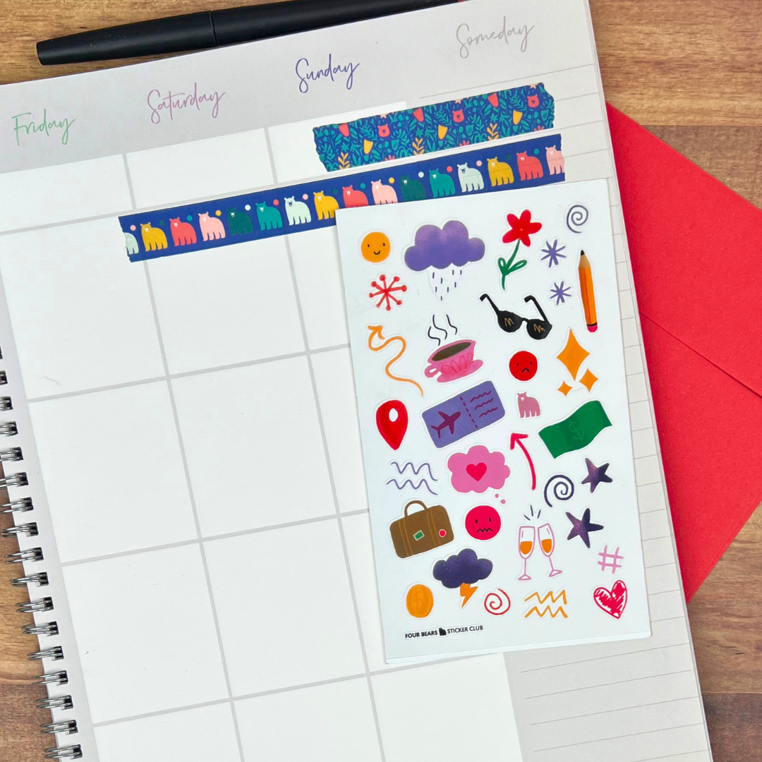 Sometimes it’s the small things that bring a page together. Little Details is a versatile sticker sheet filled with soft doodles and subtle accents designed to mix, match, and layer effortlessly. These tiny elements add movement, balance, and colour without overwhelming your spread.