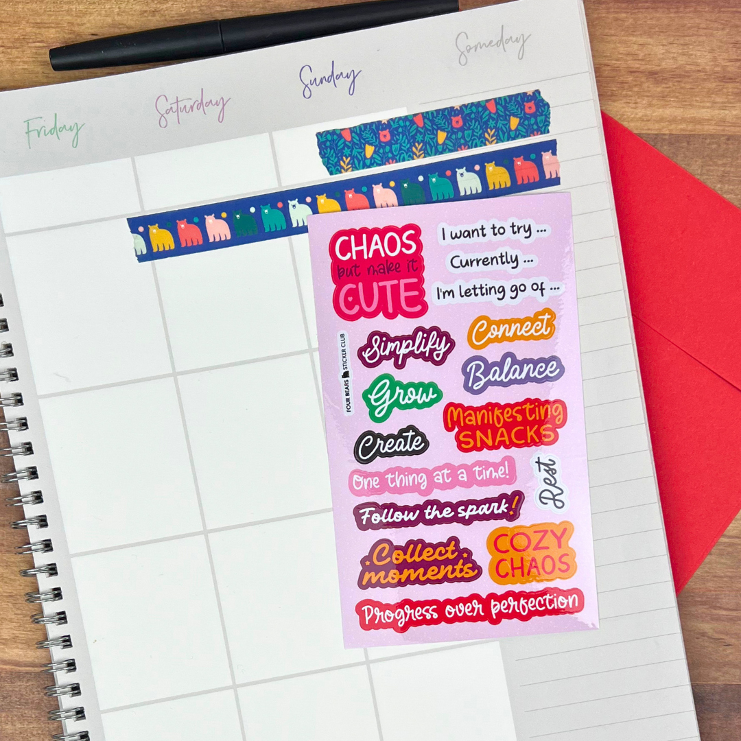 Say it like you mean it with Notes to Self, a bold, phrase-driven sticker sheet made for real life - messy, busy, and always in progress. Featuring a mix of honest reminders and playful truths, these stickers bring clarity, humour, and intention to your pages.