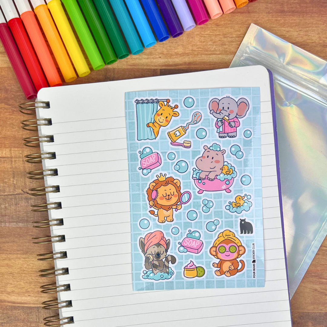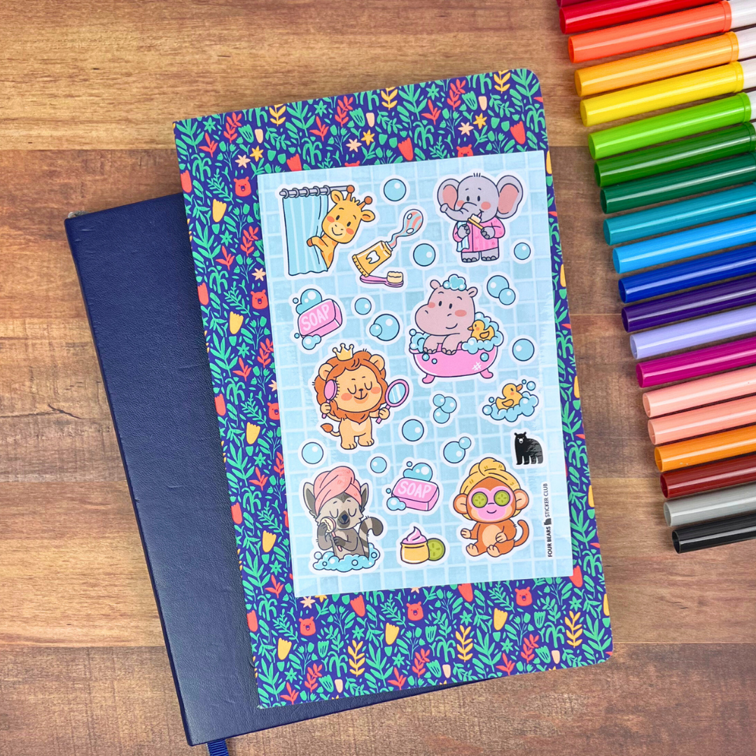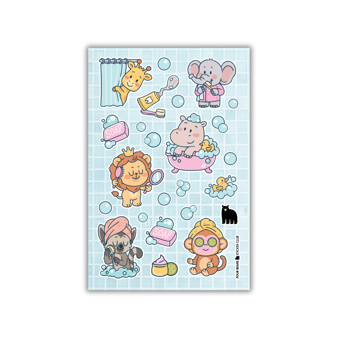 Splish, splash - it’s Safari Suds! This silly sticker sheet features friendly safari animals enjoying bath time, from lions brushing their manes to hippos soaking in bubbly tubs. Everyday routines turn into wild, giggle-worthy adventures.