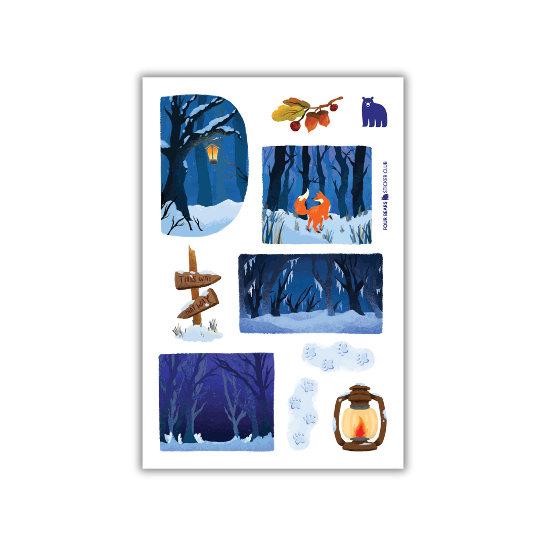 Perfect for winter journaling, planner spreads, and cozy creative projects, these stickers bring a storybook calm to any page - inviting you to wander, explore, and follow the fox into the woods.